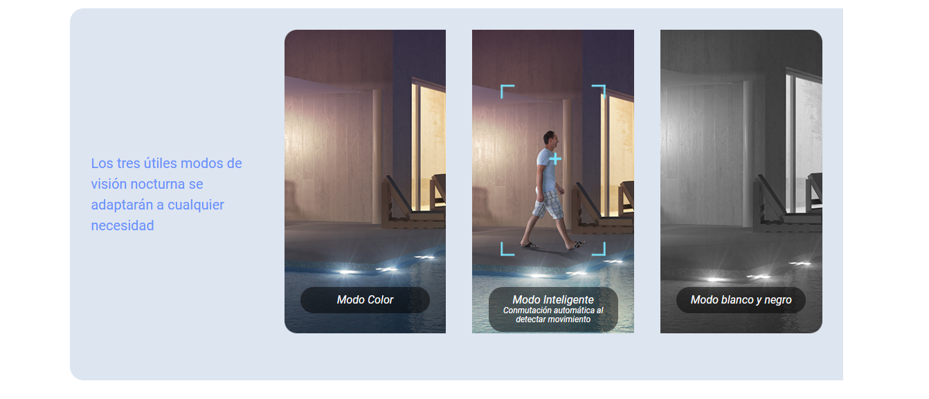 - Visión Nocturna a Color: Gracias a sus focos integrados, puedes ver imágenes nítidas y en color incluso en total oscuridad